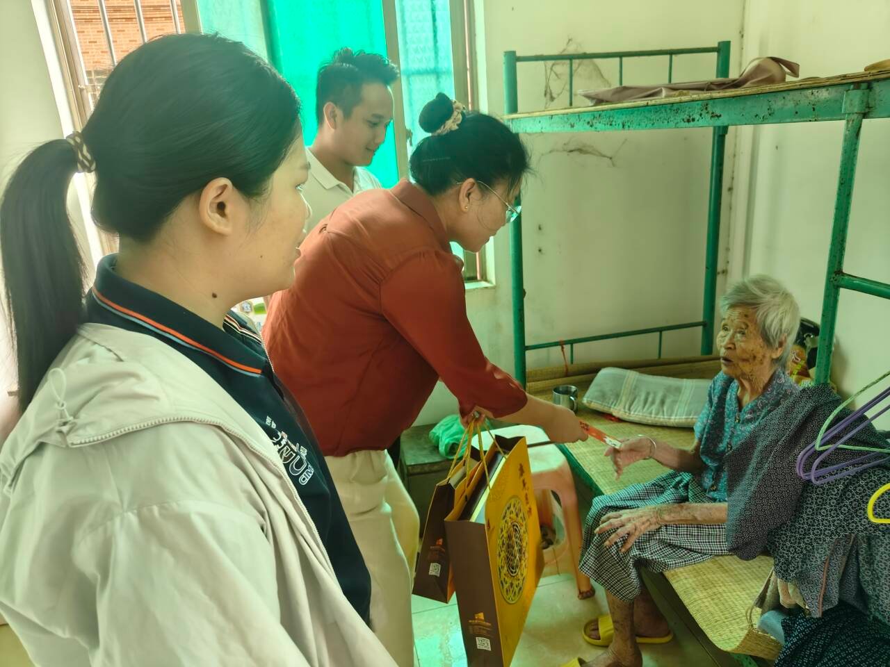 黄玉香今年97岁高龄,是中国共产党奋斗历程的重要见证者。她于1947年加入中国共产党,党龄长达78年,将青春倾注于党的革命事业。当天,党员及入党积极分子到达黄玉香家中,黄玉香尽管年近百岁,精神矍铄,热情接待来访人员。党员及入党积极分子将月饼等慰问品及慰问金交至老人手中,并认真聆听黄玉香讲述革命经历,接受红色教育。