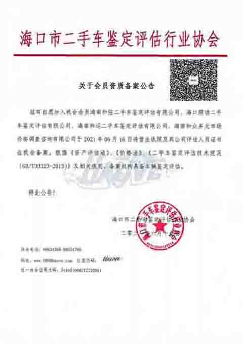 海口市二手车鉴定评估行业协会