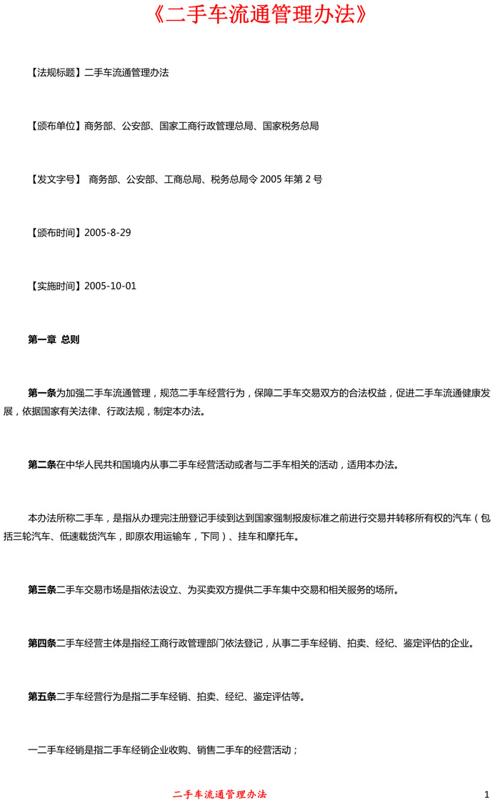 二手车流通管理办法