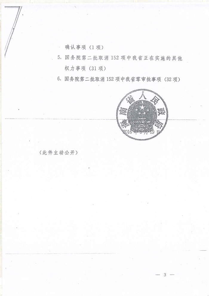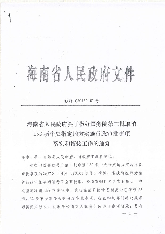 海南省人民政府关于做好国务院第二批取消2152项中央指定地方实施行政审批事项落实和衔接工作的通知[2016]51号