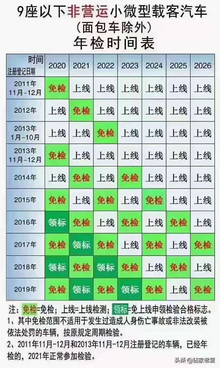 9座以下非营运小微型载客汽车(面包车除外)年检时间表
